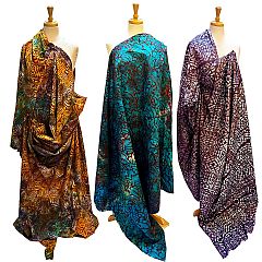 Our batiks are all high quality, 100% cotton. Some are on plain weave cotton, others on a subtle damask weave. In Africa, these fabrics are used mainly for clothing and tailoring. Many or our customers use them for patchwork and quilting.